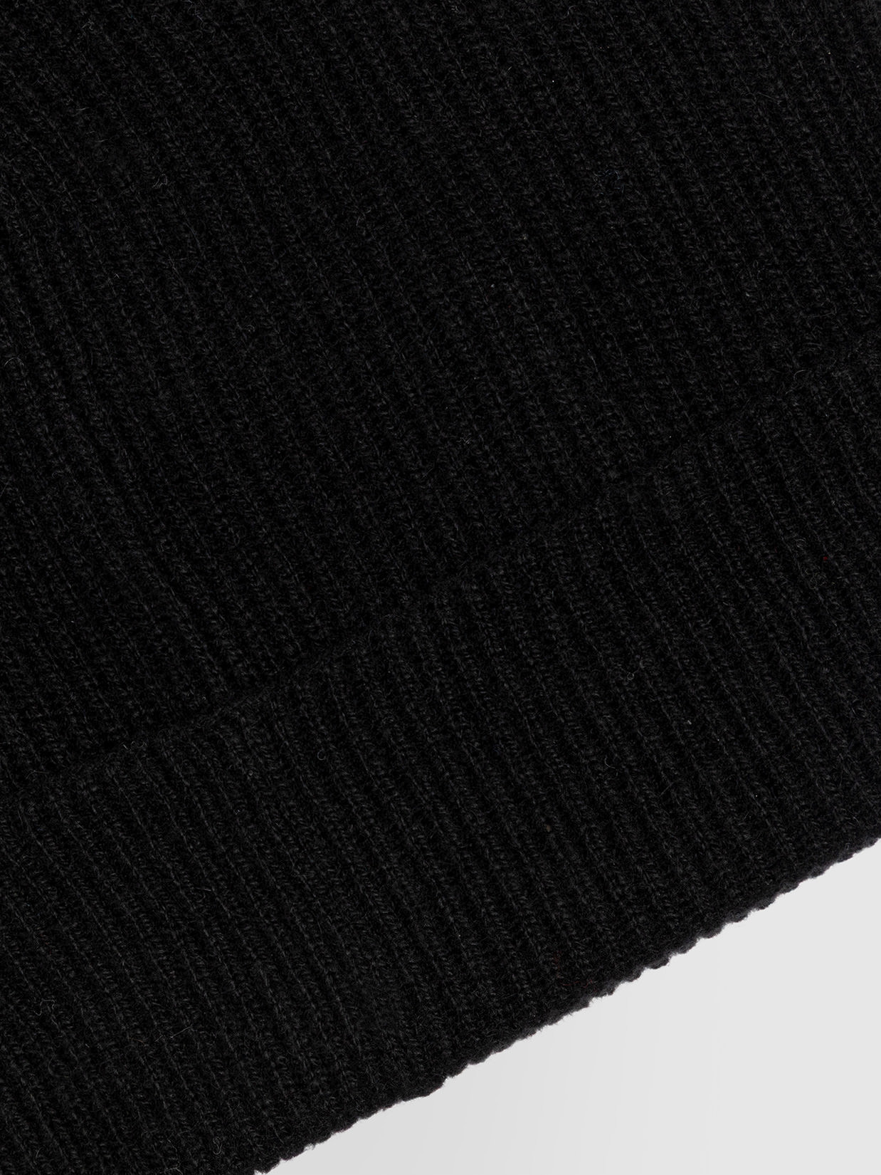 Cashmere beanie hat. Ribbed texture. Reverse detailing at bottom.