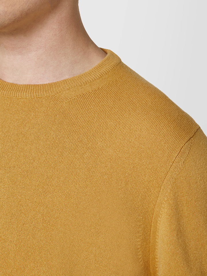 Basic crew neck sweater in solid color Cashmere. Long sleeves. Fine-rib knit neckline cuffs and hem. Regular fit.