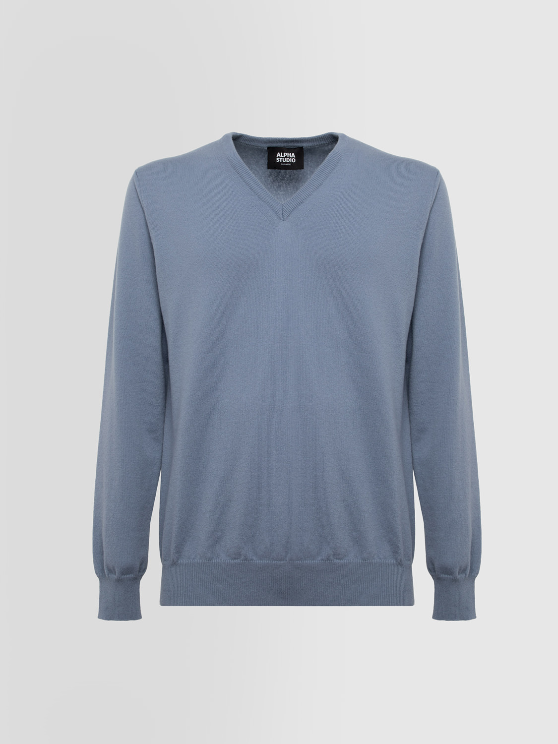 Col en V basic en cachemire couleur unie. Manches longues. Col poignets et bas de la chemise en côte fine. Ajustement régulier.